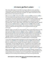 Conclusively, the speech's core subject and its relevance to the African-American community will be discussed. Obama's discourse, titled "A More Perfect Union," centers on the African-American narrative.