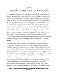 This pressing issue is brought to light by the journalist and filmmaker Jose Antonio Vargas in his article titled "Dreamers Put Their Trust in DACA. What Now?" published in The New York Times on September 9, 2017.