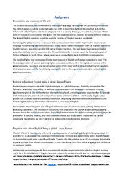 The content discusses the proliferation of the English language, delving into the possibility that around two billion people could be studying English by 2020.
