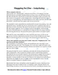 Write a short analytical essay about Anne Cassidy’s short story “Shopping for One”. You must focus on the theme ‘loneliness’.