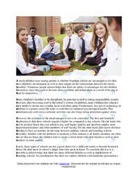 A much-debated issue among parents is whether boarding schools are advantageous for their own children's development as well as their impact on the relationships between the family members.