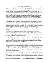 Powell's discourse primarily revolves around the condemnation of racism in America, delving deep into its unjustifiable nature and reasons behind it. Powell's message is glaringly evident—he is consumed by anger and despair.