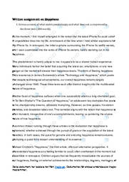 1. Give an account of what makes people happy and what does not, as expressed in the three texts (400 words).